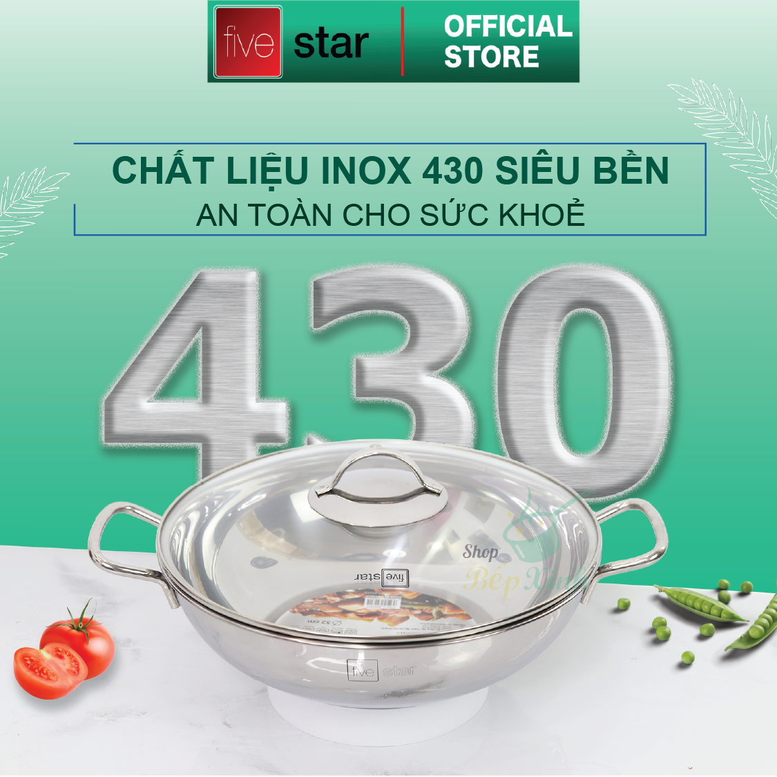 Chảo Inox 304 Fivestar size 32cm 3 đáy vung kính - Lẩu, xào, rán đủ kiểu - Bảo hành 5 năm 0986588655