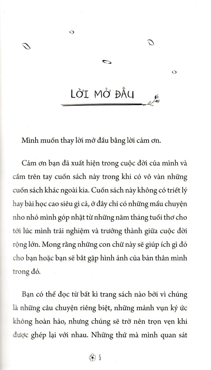 Cuốn sách này không có triết lý hay bài học cao siêu gì cả, ở đây chỉ có những mẩu chuyện nho nhỏ mà tác giả Hạ Mer góp nhặt từ những năm tháng tuổi thơ cho tới lúc trải nghiệm và trưởng thành giữa cuộc đời rộng lớn.