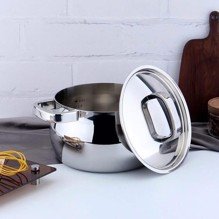 Nồi được làm bằng thép không gỉ 18/10, chế biến nhiều món ăn đa dạng, an toàn nhờ đặc tính chống khuẩn. Thông tin chi tiết: Màu inox bóng sáng góp phần làm căn bếp