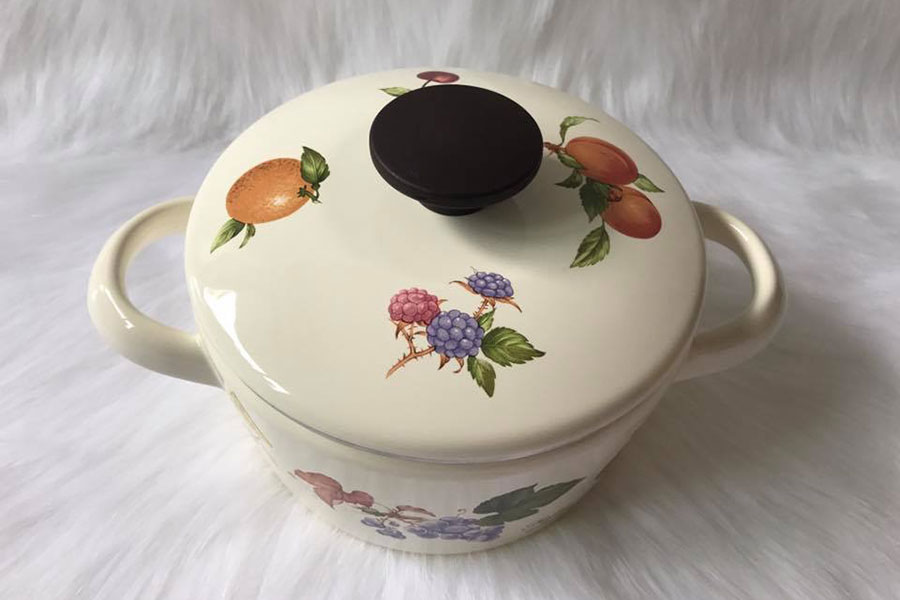 Thiết kế sang trọng, quai cầm và núm nắp chắc chắn Nồi Tráng Men Hoa Văn Trái Cây Sử Dụng Bếp Từ Fujihoro FRV-16W sở hữu thiết kế tinh tế với màu sắc và họa tiết