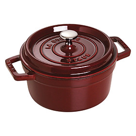 - Nồi tròn Staub bằng gang đúc tráng men - Nồi Tròn Staub – Màu Đỏ Lựu - Thiết kế sang trọng, có thể đặt ngay trên bàn ăn sau khi nấu. - Lớp phủ màu