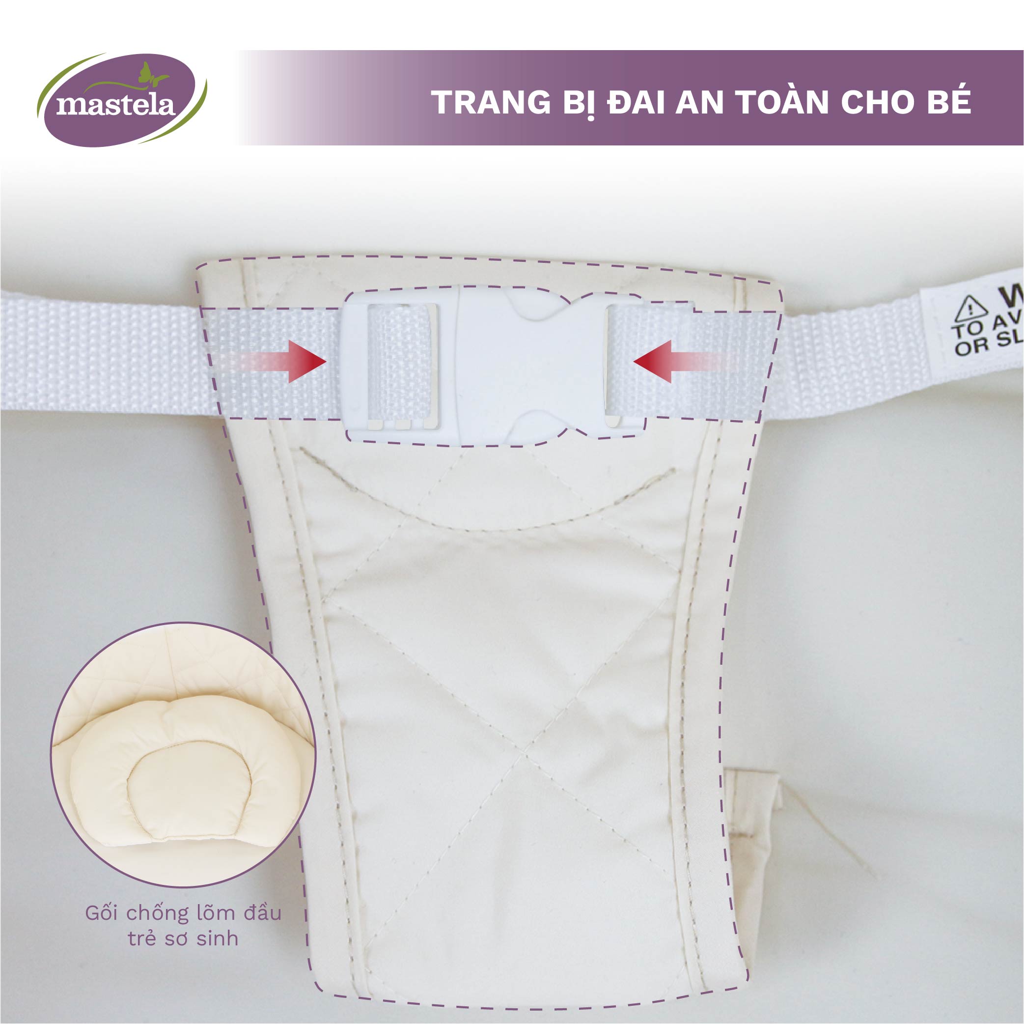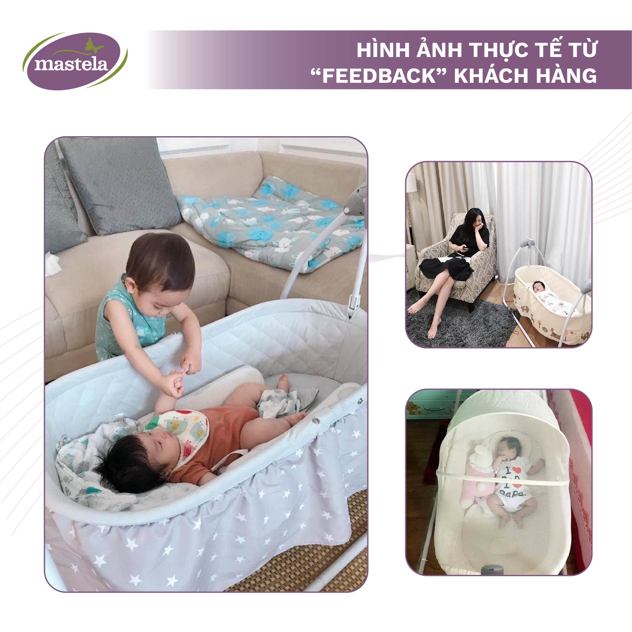 Ngoài ra, nôi Mastela còn có 12 giai điệu nhạc nhẹ nhàng êm ái giúp bé dễ dàng đi vào giấc ngủ