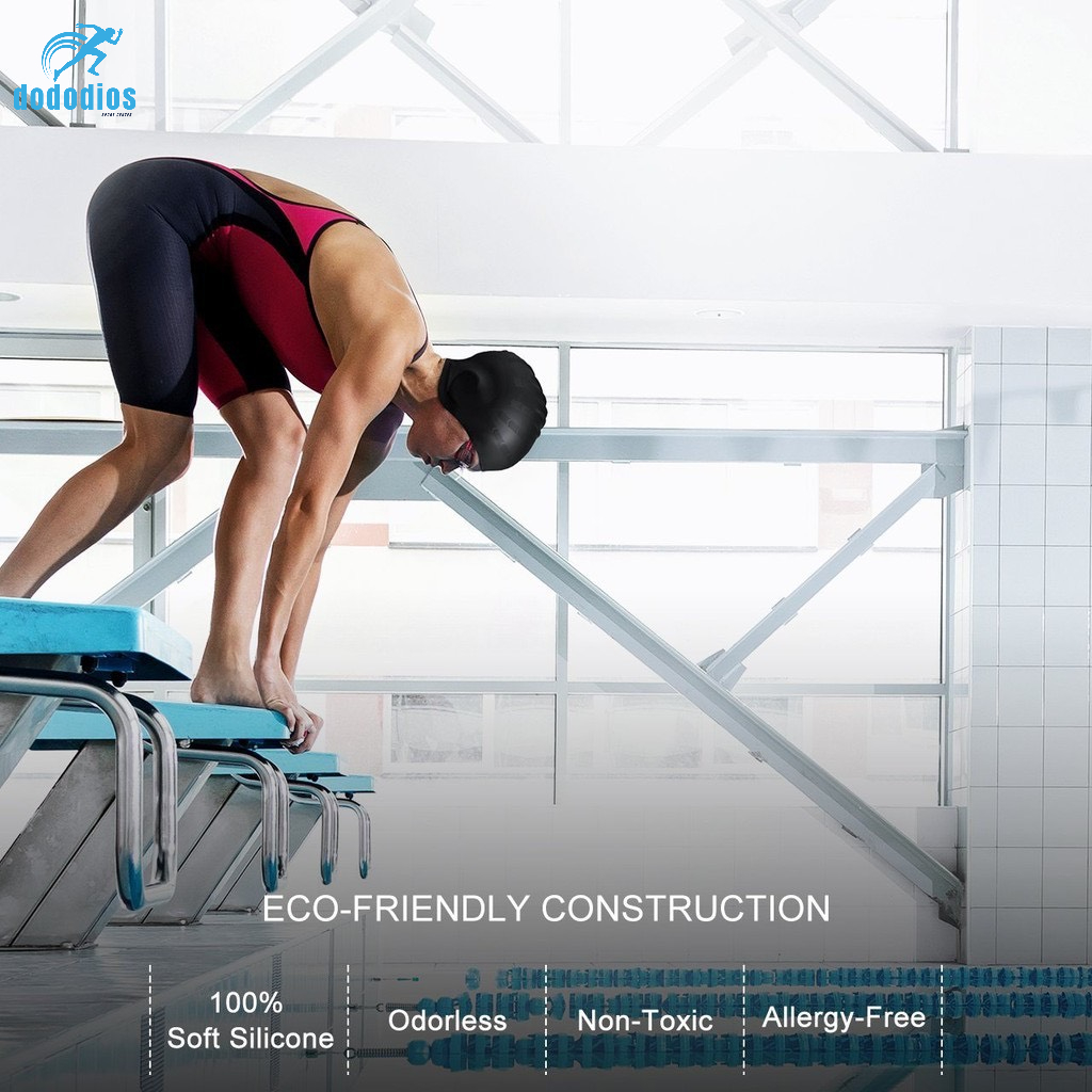 Nón bơi người lớn trùm tai dododios chất liệu mũ bơi bằng silicone ngăn nước cho nam, nữ