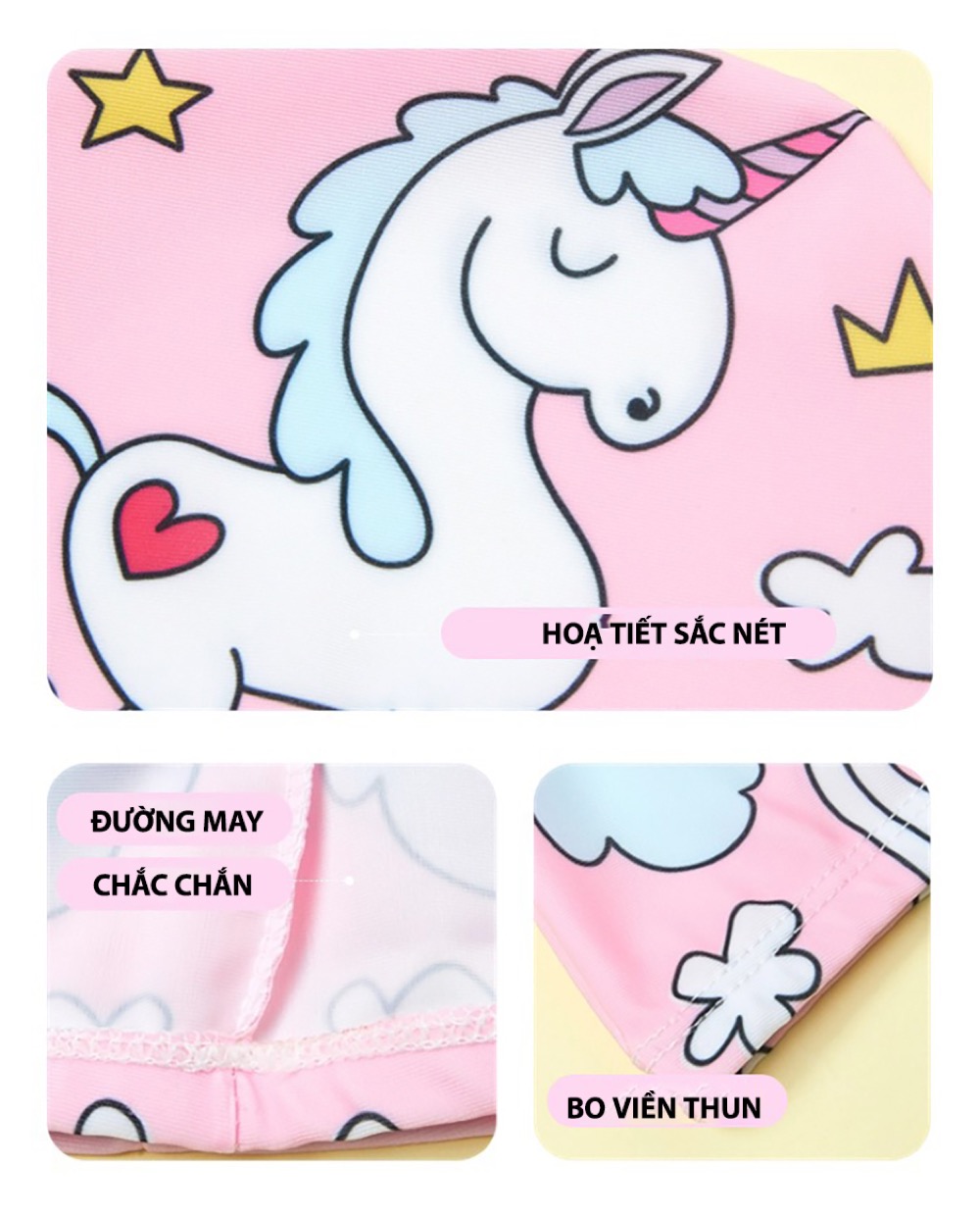 Thông tin cơ bản : - Chất liệu : vải Polyester - Nhiều hoạ tiết hoạt hình và con vật đáng yêu - Phù hợp cho bé sử dụng các buổi học bơi, Luyện tập