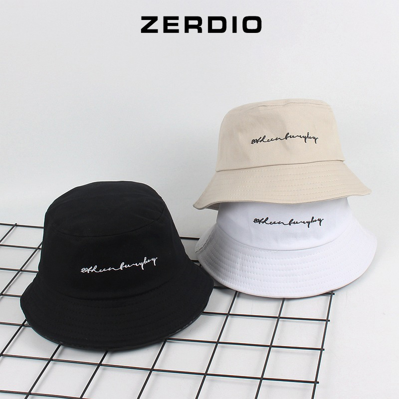 Nón vành tròn, Mũ bucket nam nữ tai bèo Hàn Quốc 2 mặt họa tiết chữ ký vải cotton cao cấp - ZERDIO