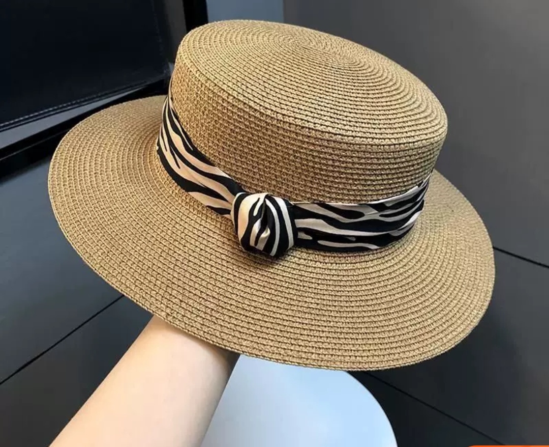 ✨Nón mũ rộng vành nhỏ chất liệu cói mũ rộng vành đi biển phối đai vân sọc Zebra mẫu mới thời trang Hàn Quốc dona24082505