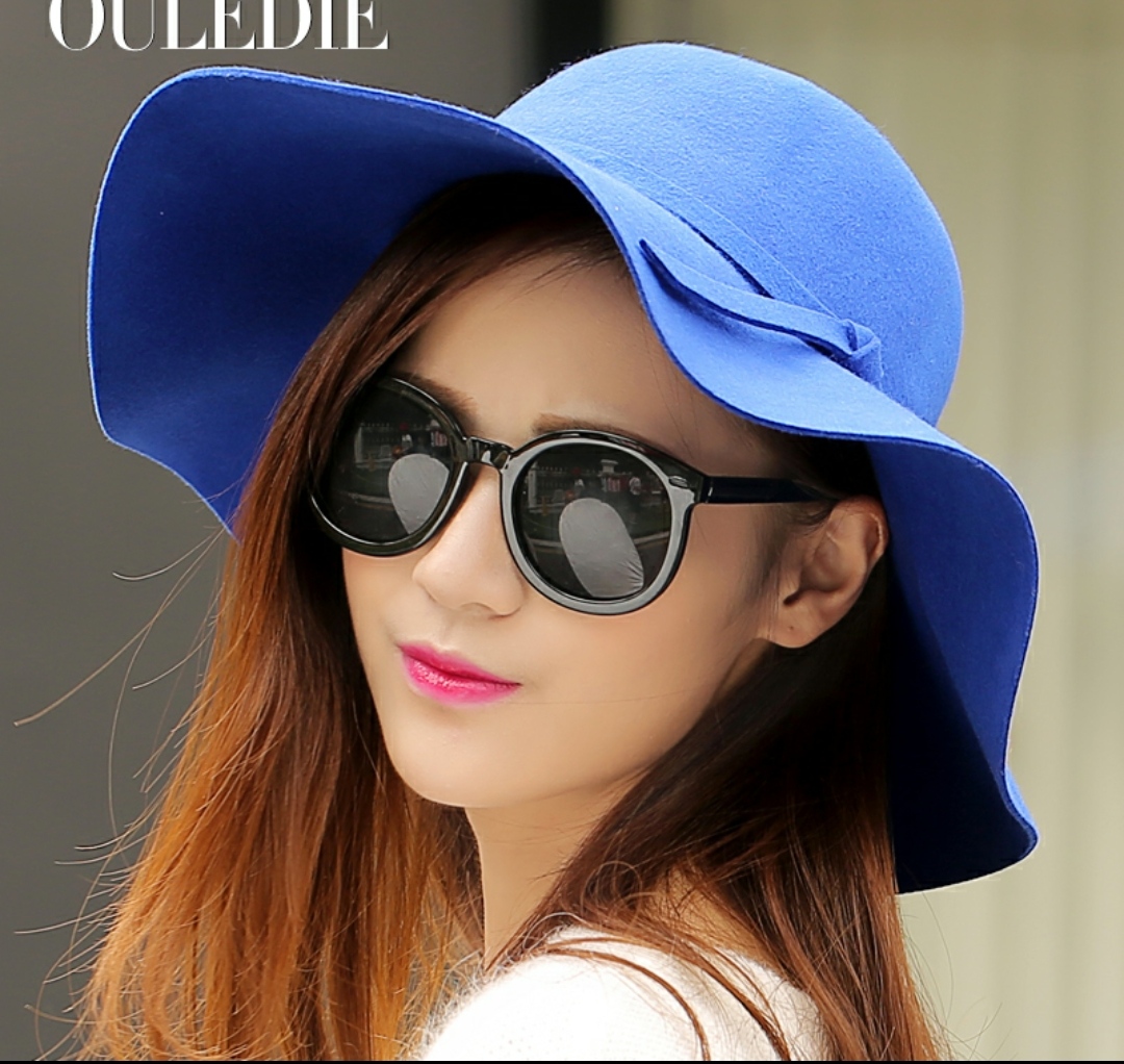 ✨Nón vành rộng mũ rộng vành đi biển chống nắng nữ fedora màu xanh nỉ thời trang Hàn Quốc dona22030803