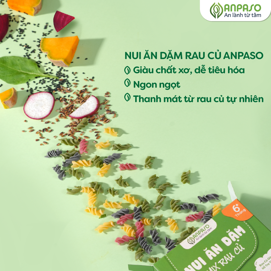 ✨Nui Ăn Dặm Mix Rau Củ Anpaso Cho Bé Từ 6 Tháng Tuổi Hộp 150g, Thực Phẩm Bổ Sung Dinh Dưỡng Chất Xơ, Vitamin K và Canxi cao