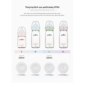 - Có 4 loại núm ti thay với các kích cỡ khác nhau tương ứng với từng giai đoạn phát triển của bé. Mẹ có thể lựa chọn núm ti