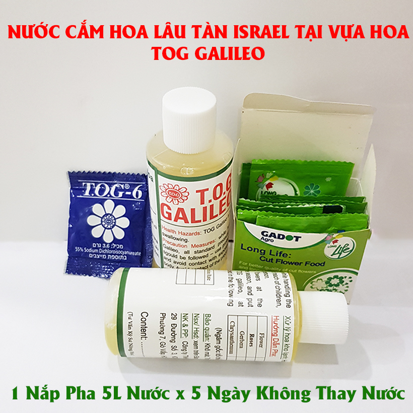 • Dung dịch Nước Cắm Hoa Lâu Tàn Tại Vựa Bán Hoa Tươi Israel TOG Galileo Chai 100ml pha 100L nước x 5 ngày không thay nước