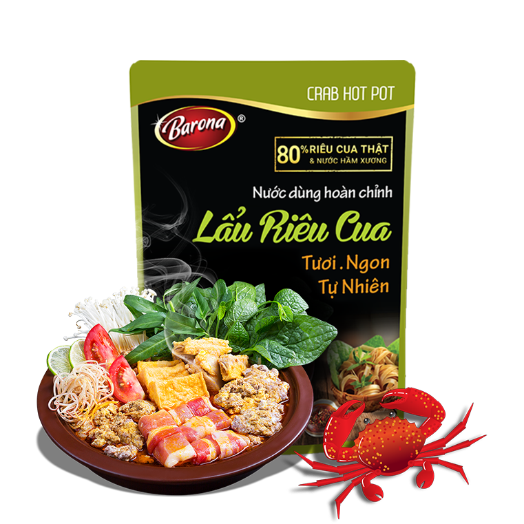 - 1 gói Nước Dùng Hoàn Chỉnh Barona – Lẩu Riêu Cua 230g.