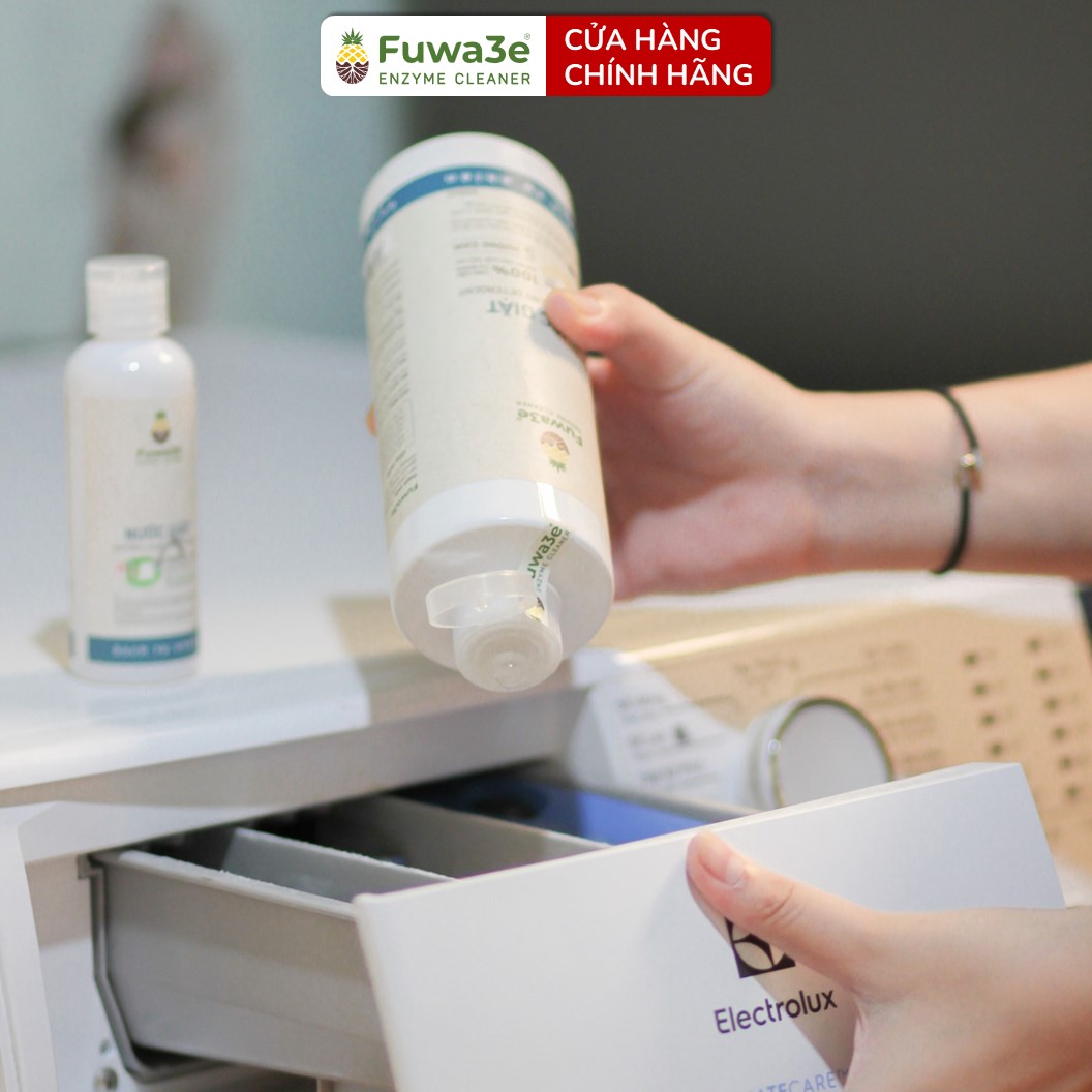 Nước giặt hữu cơ Fuwa3e ứng dụng công nghệ lên men vỏ dứa với Enzyme Bromelain có trong dứa có hoạt tính làm tan và tẩy sạch các vết bẩn. Sản phẩm không chứa hoá chất độc hại, chất tẩy trắng và hương liệu nên phù hợp giặt đồ cho trẻ sơ sinh, đồ lót, khăn. Sản phẩn đạt chuẩn không kích ứng da được kiểm định bởi Quatest 2. Một đặc điểm nổi bật của sản phẩm là nước thải sau khi giặt có thể dùng trực tiếp để tưới cây, các enzyme trong nước thải sẽ làm sạch đất và cung cấp thêm lợi khuẩn cho cây trồng.