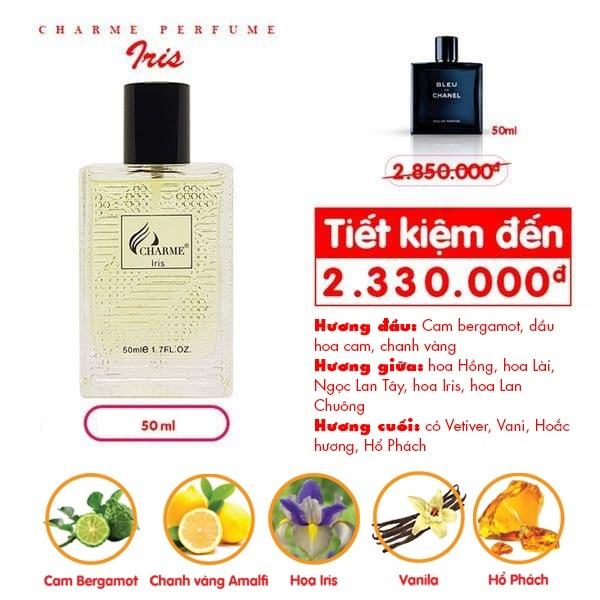 ✨Nước hoa nam quyến rũ, Charme Iris, thơm lâu, sành điệu cá tính, lưu hương cả ngày, 50ml