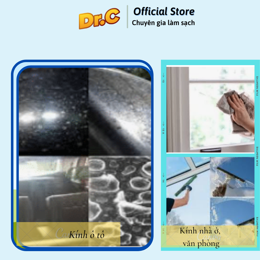 Nước lau kính Dr.C với công thức đậm đặc và tiên tiến giúp lau sạch các bề mặt kính với hiệu quả cực mạnh và cực nhanh.Sản phẩm thích hợp sử dụng cho các loại cửa kính, gương soi…
