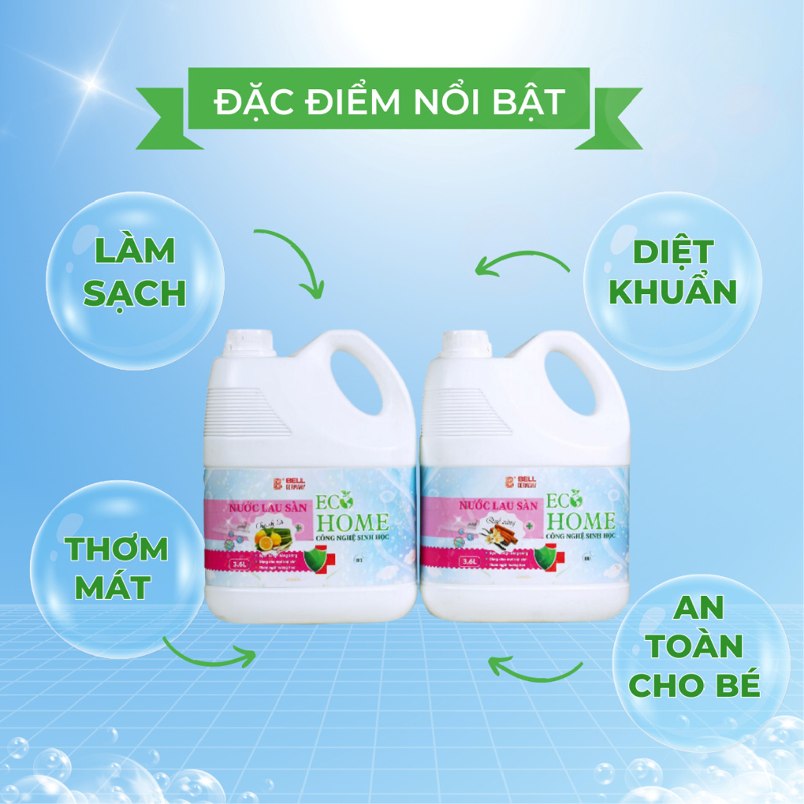 - Đảm bảo sạch sẽ, mát mẻ, an toàn là điều tất yếu. Làm sạch, khử khuẩn tốt nhưng các sản phẩm lau sàn thông thường có thể để lại cặn hóa chất gây hại đến sức khỏe.