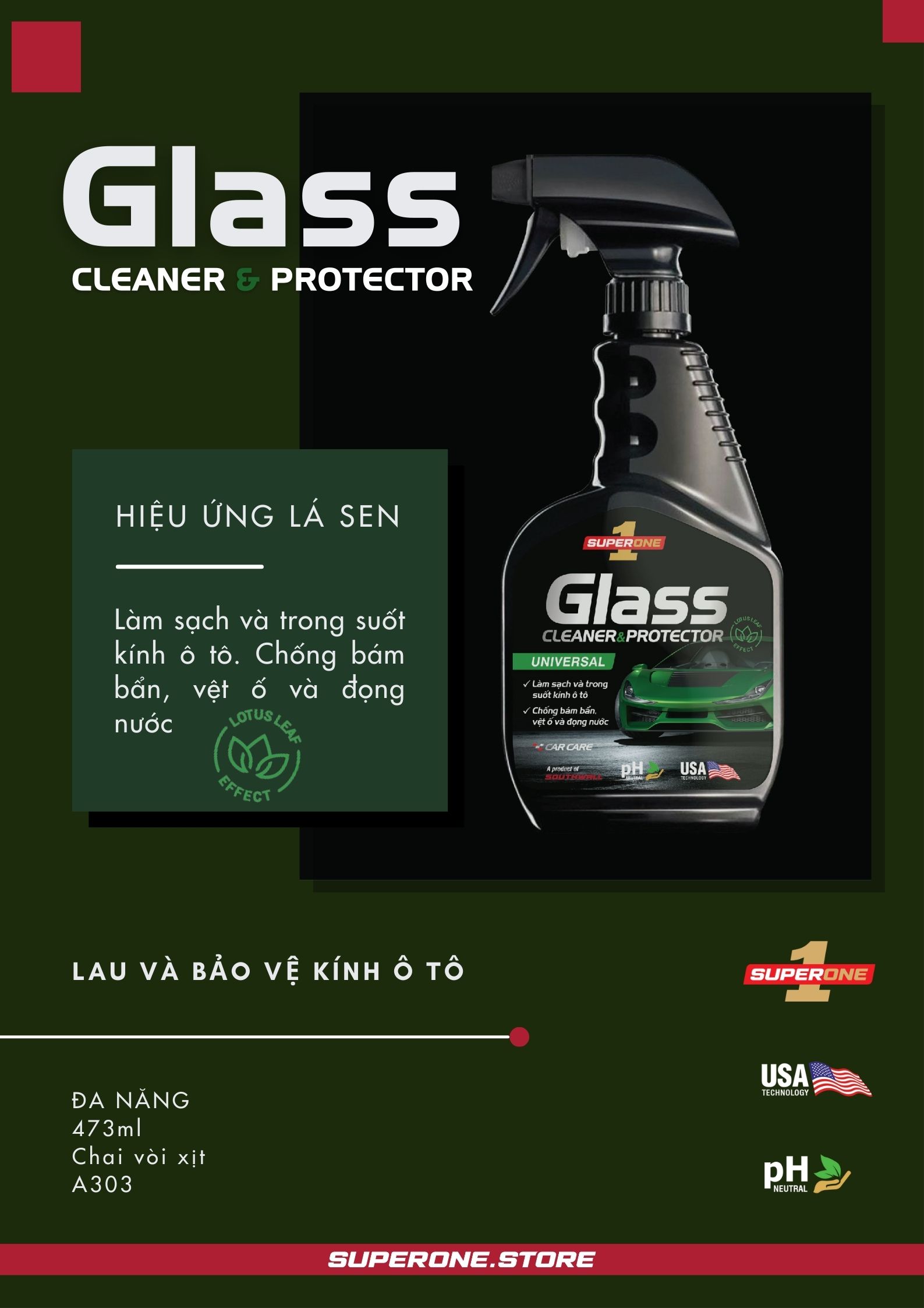 LÀM SẠCH VÀ TRONG SUỐT KÍNH Ô TÔ - CHỐNG BÁM BẨN, VỆT Ố VÀ ĐỌNG NƯỚC Nước Lau Và Bảo Vệ Kính Super One Glass Cleaner and Protector - Universal, một