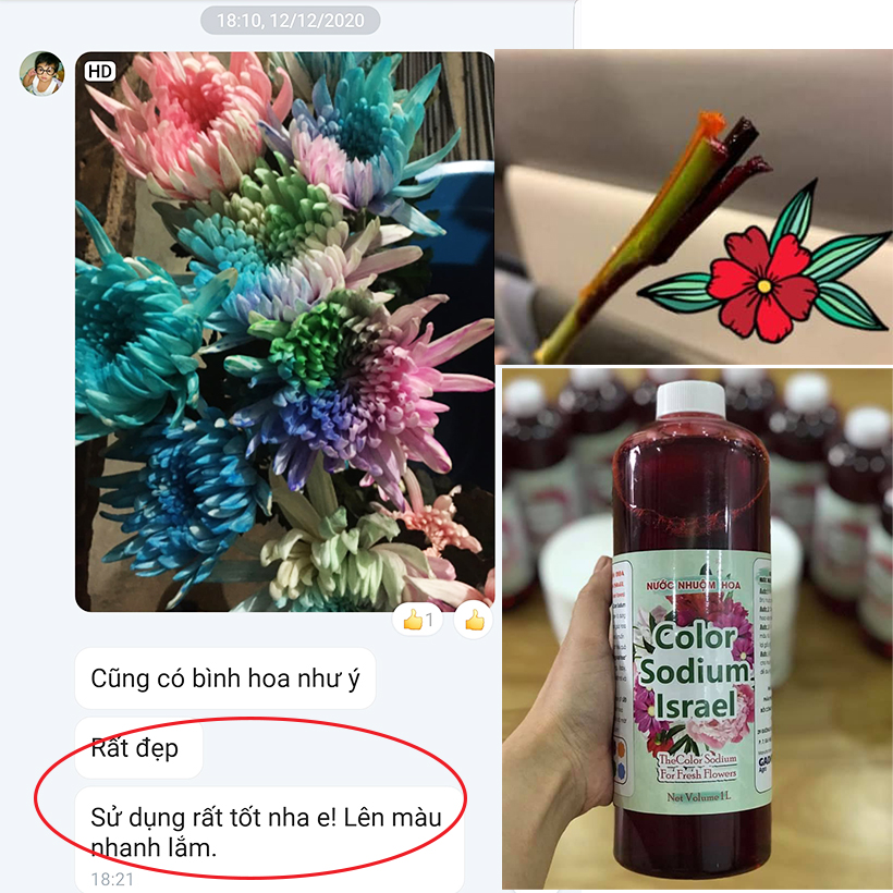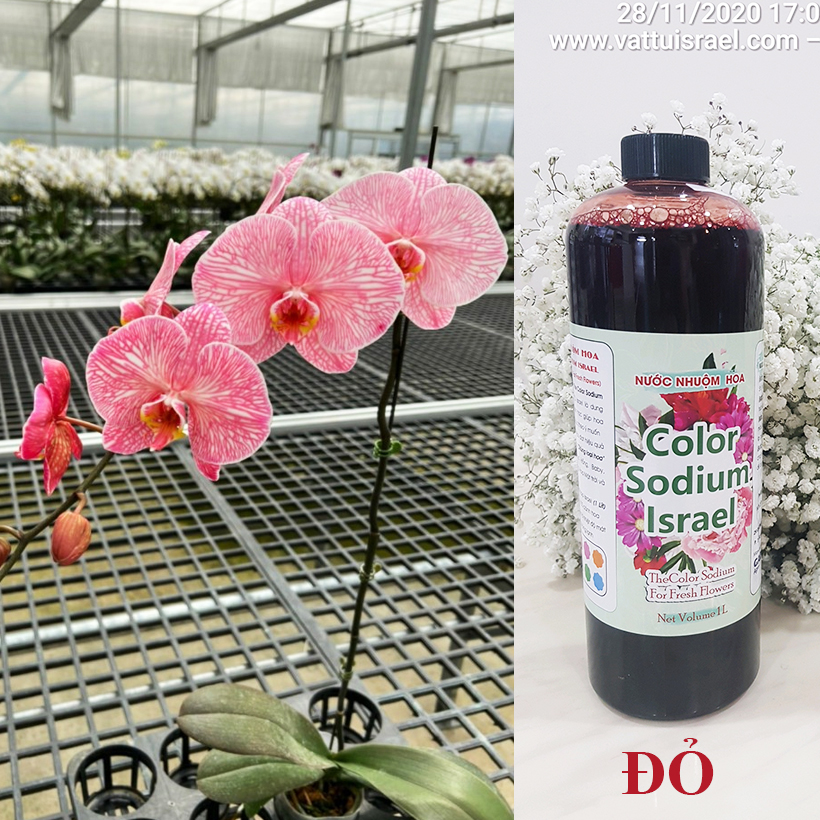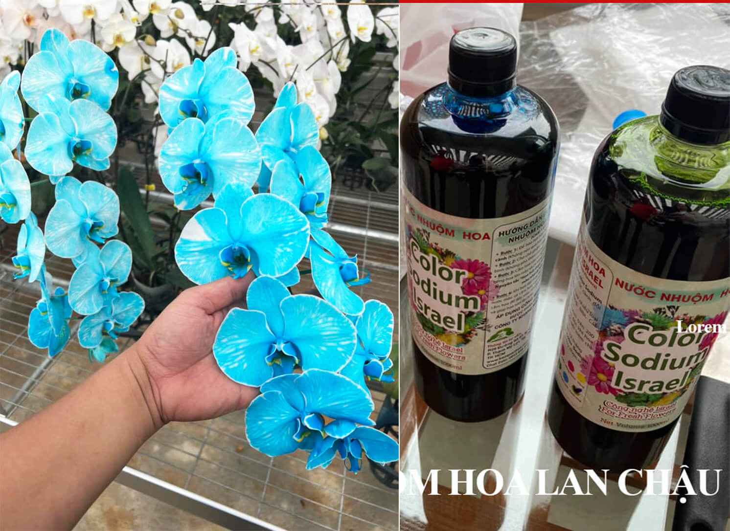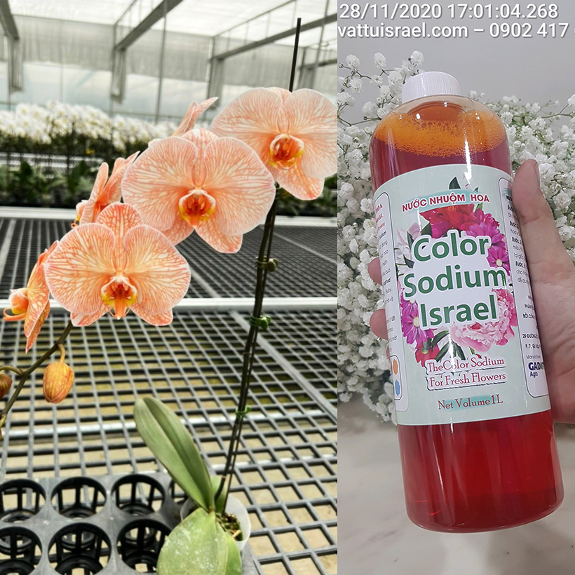 Với nguyên liệu nước màu nhuộm hoa công nghệ Israel (dạng nước) chai 1L được đưa vào sử dụng và thu được kết quả tốt. Điều quan trọng là sự cần mẫn và tỷ mỳ yêu nghề của nhà vườn trồng hoa lan chậu, chịu thử nghiệm và thu được thành công.