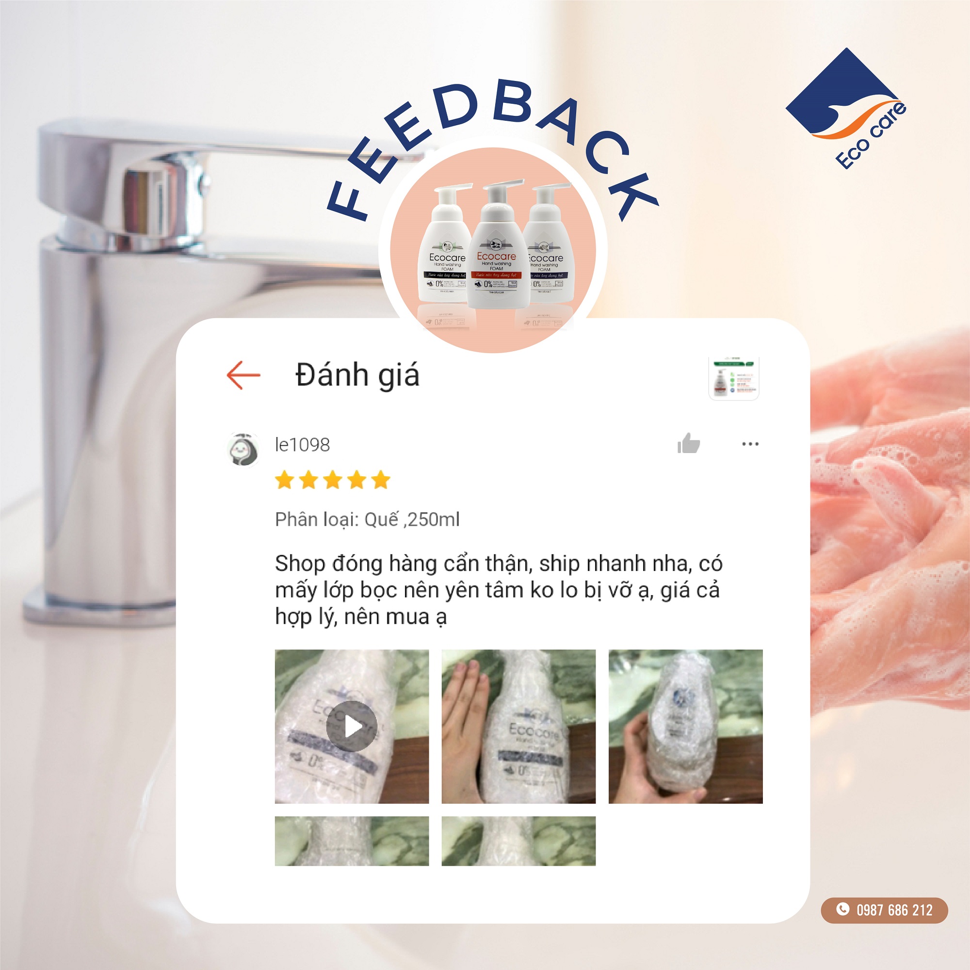 • Trước tiên, Công ty Ecocare xin cảm ơn Quý Khách hàng đã tin tưởng lựa chọn sản phẩm Nước rửa tay tạo bọt Hữu cơ - Nước rửa tay diệt khuẩn tinh dầu thiên nhiên Ecocare