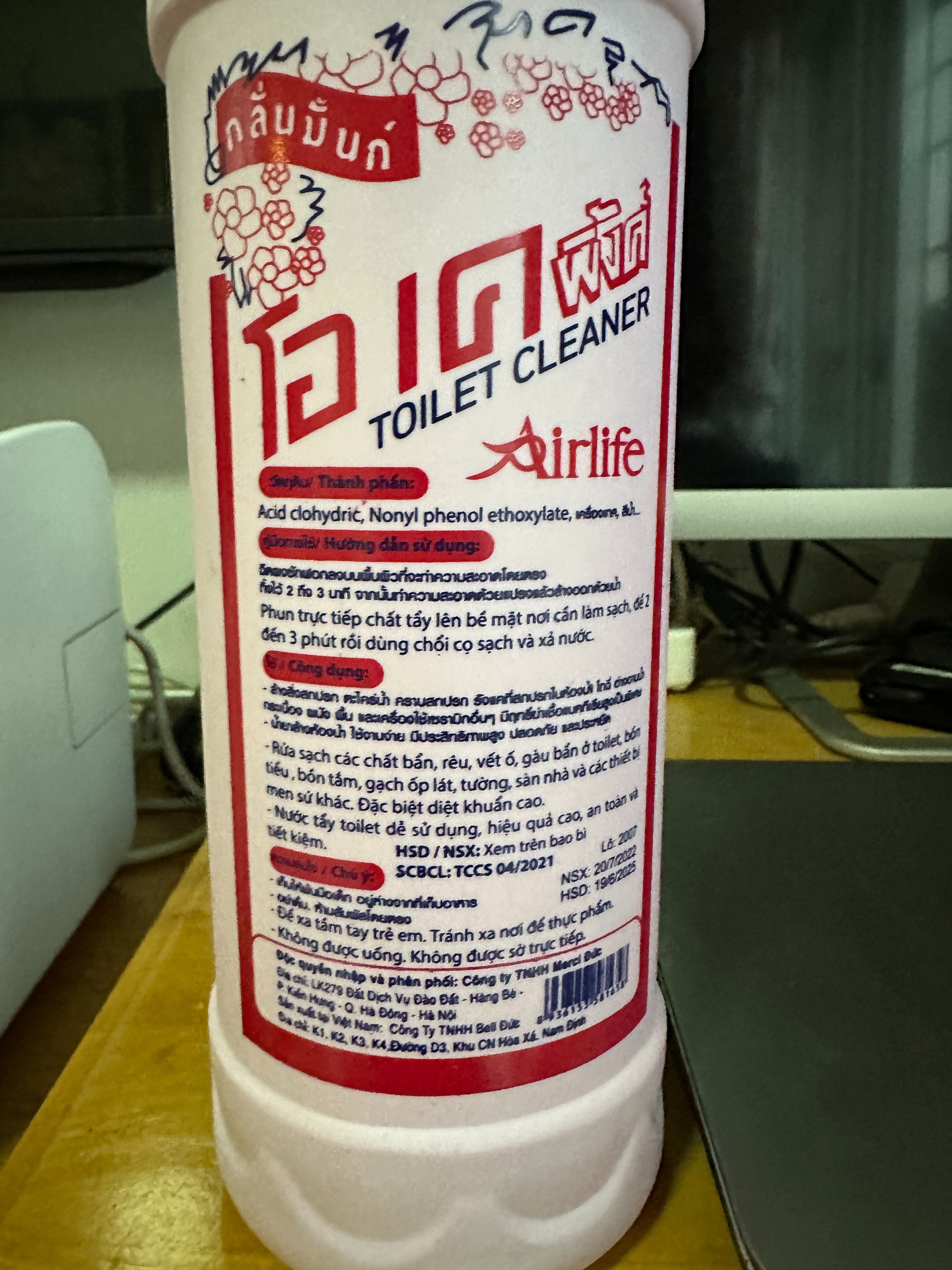 Tên sản phẩm: Chai tẩy vệ sinh toilet 960ml Sạch Thơm An toàn sử dụng Thể tích: 960ml Xuất xứ : Việt Nam Thương hiệu: Hando Màu sắc: Hồng Giúp nhà vệ sinh thông thoáng