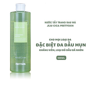 Tẩy trang rau má Pretty Skin The Pure Jeju Cica Cleansing Water làm sạch bụi bẩn, bã nhờn cũng như lớp trang điểm. Phù hợp với mọi loại da, đặc biệt là da dầu, mụn, lỗ chân lông to