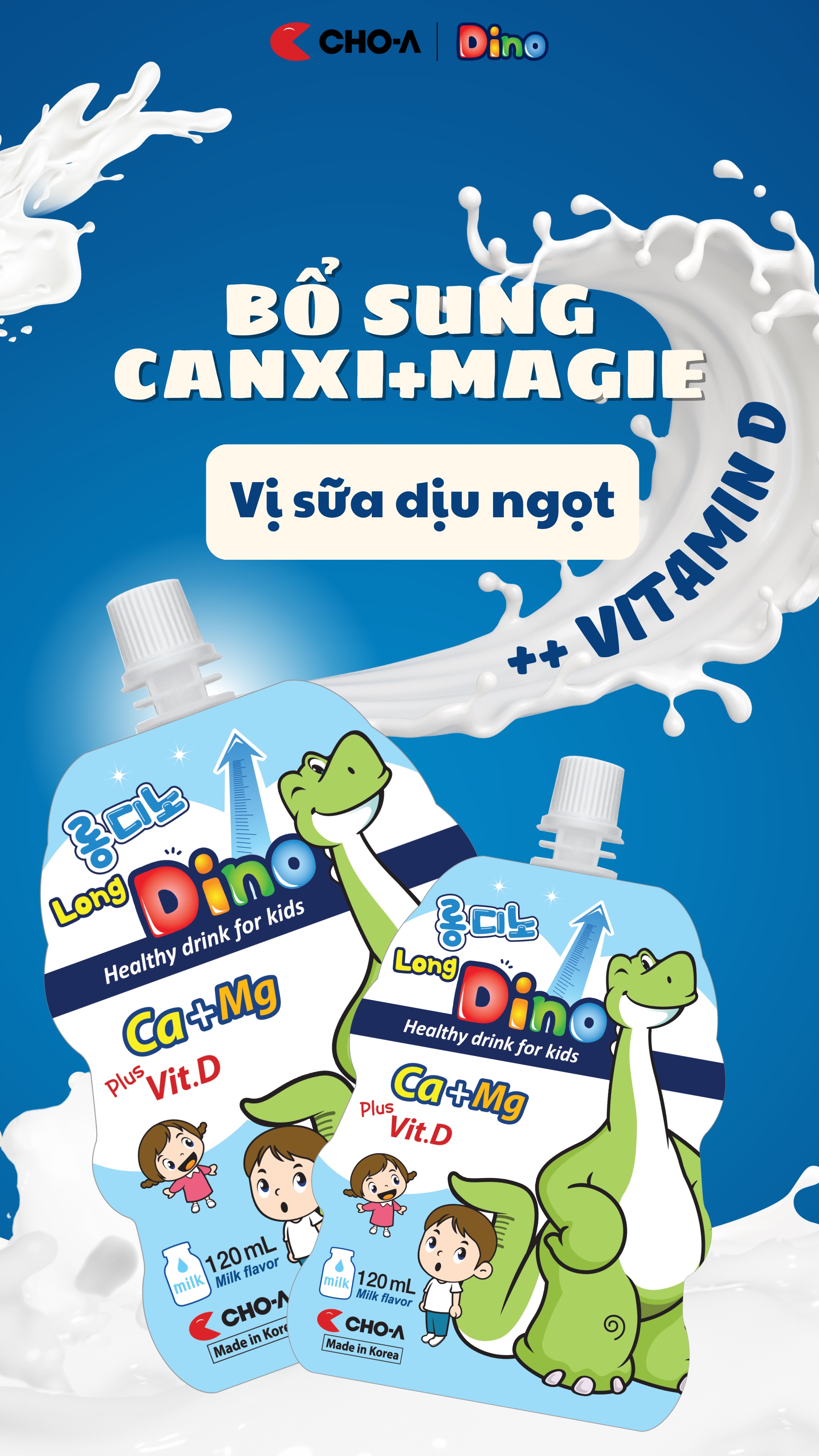 Mua tại TiktokNƯỚC UỐNG BỔ SUNG CANXI VÀ VITAMIN D CHO TRẺ - LONG DINO VỊ SỮA (1 GÓI X 120ML) Nước uống dinh dưỡng Dino là sự lựa chọn hoàn hảo dành cho trẻ em trên 3 tuổi, là giải pháp tuyệt vời để hạn chế trẻ sử dụng các loại nước có gas. Sản phẩm được sản xuất bởi dây chuyền công nghệ hiện đại đạt chuẩn HACCP và GMP, được đảm bảo chất lượng dưới sự kiểm tra nghiêm ngặt của công ty CHO-A PHARM Hàn Quốc. Công Dụng: