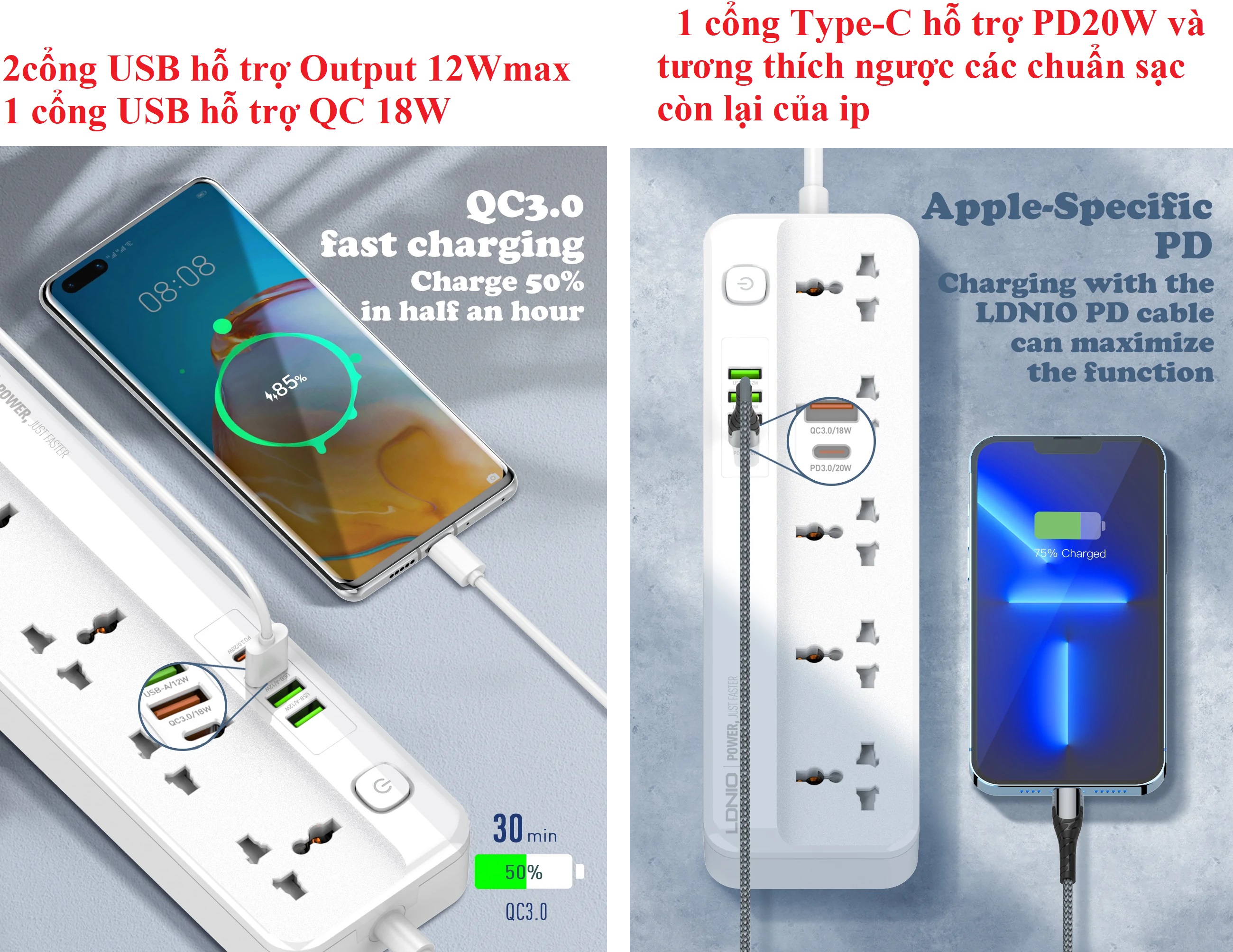 ✨Ổ cắm đa năng 2500W tích hợp sạc nhanh PD20W QC18W LDNIO SC5415 _ hàng chính hãng