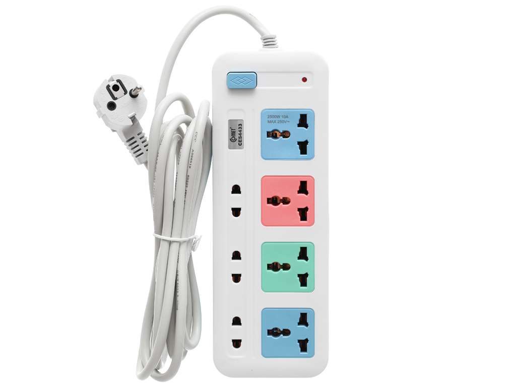 Ổ Cắm Điện Comet 4 Lỗ 3 Chấu, 3 Lỗ 2 Chấu CES4433 được thiết kế khoa học, an toàn tối đa cho người sử dụng. Thiết bị có kích thước nhỏ cùng chiều dài dây điện 3 mét giúp bạn có thể di chuyển cũng như sắp xếp thiết bị gọn gàng hơn và thuận tiện hơn.