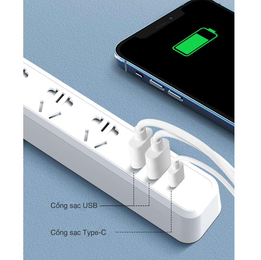 Ngoài 3 đầu cắm trên, sản phẩm còn được tích hợp thêm 3 cổng USB với tổng công suất lên đến 15W, giúp hỗ trợ sạc trực tiếp cho các thiết bị di động như điện thoại, máy tính bảng, smartwatch,… mà không cần đến cốc sạc.