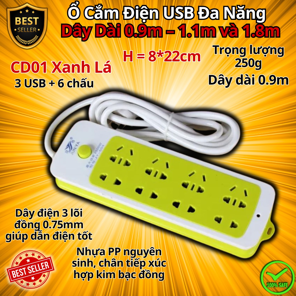 Ổ Cắm Điện USB Đa Năng Cao Cấp Chống Giật Dây Dài 0.9m – 1.1m và 1.8m