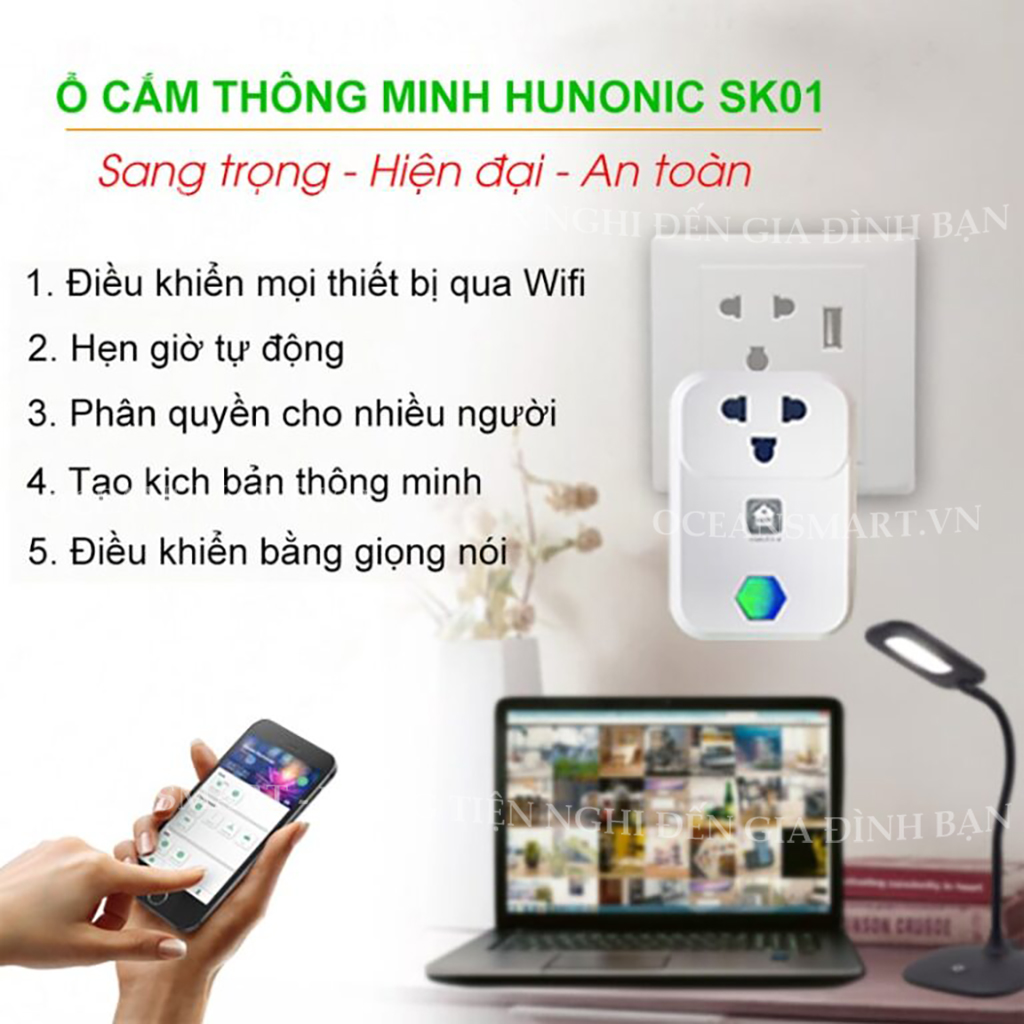 Ổ CẮM THÔNG MINH HUNONIC SK01 ĐIỀU KHIỂN MỌI THIẾT BỊ TRONG NHÀ TỪ XA QUA ĐIỆN THOẠI