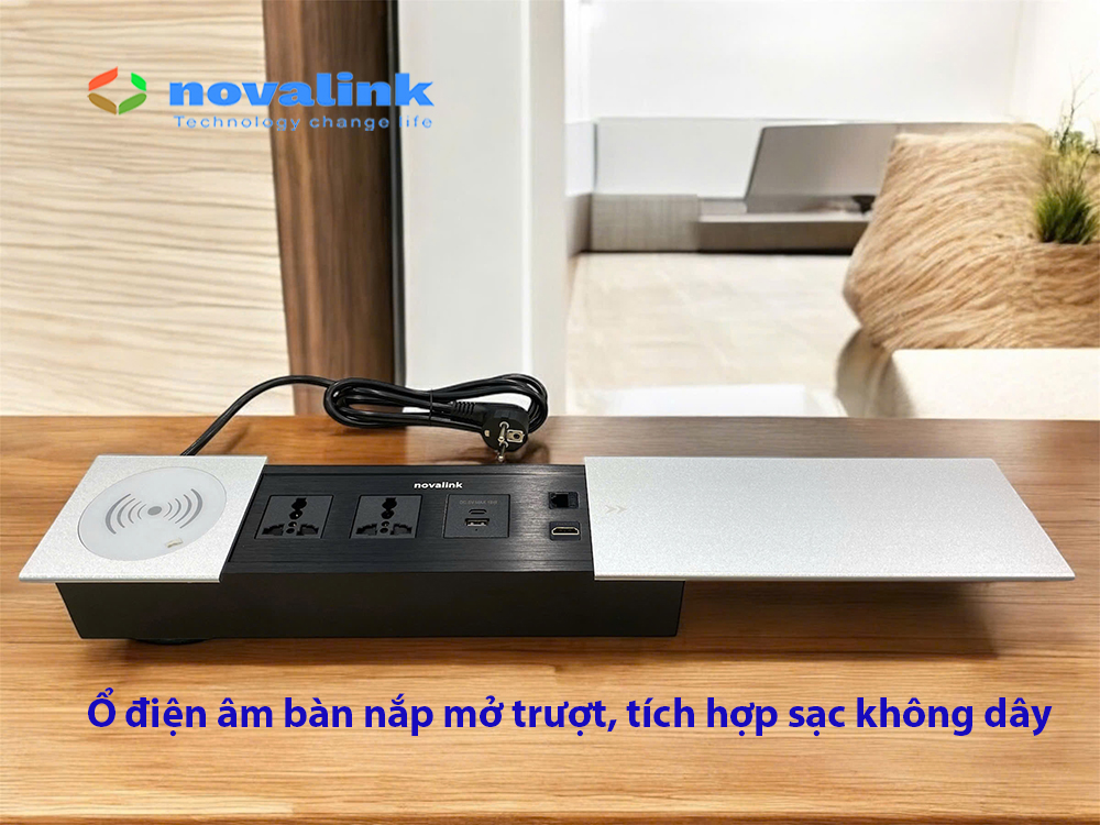 Giới thiệu Hộp điện âm bàn họp tích hợp sạc không dây Novalink ST-W