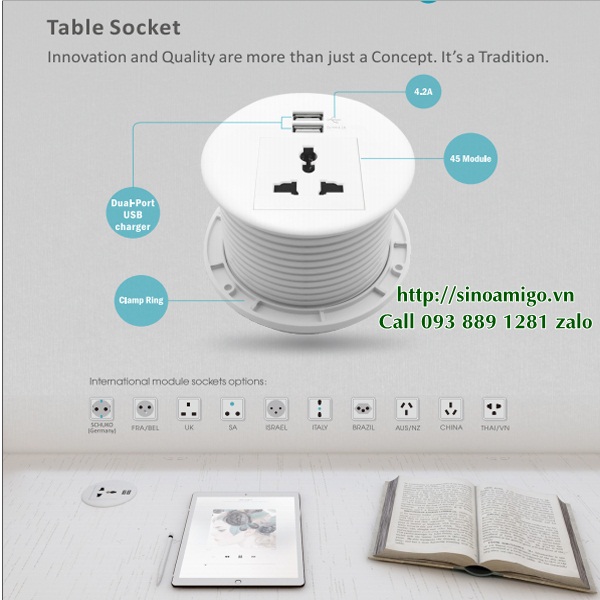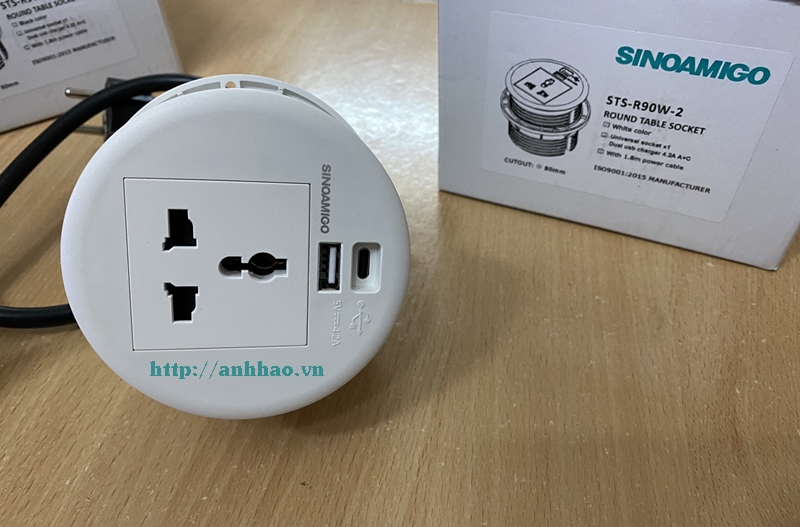 Ổ Cắm Âm Bàn Sinoamigo STS-R90-2: Hiện Đại và Tiện Nghi Cho Bàn Làm Việc, Bàn Học..