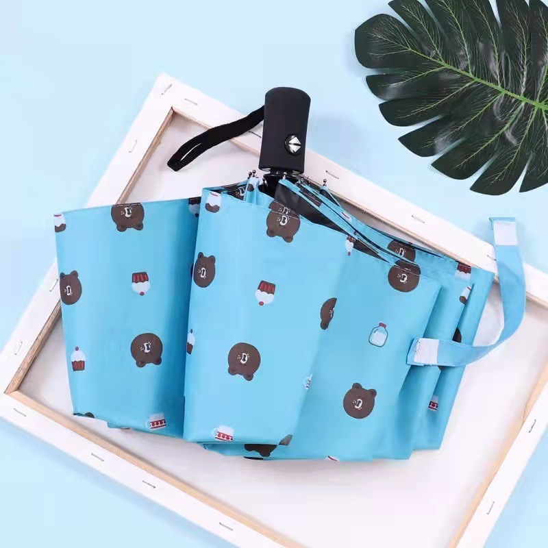 Dù che mưa nắng 2 lớp, chống thấm, cách nhiệt, chống tia UV bảo vệ da Ô DÙ ĐI MƯA GẤP GỌN HÌNH GẤU BROWN Ô dù đi mưa gấp gọn hình gấu Brown thiết kế