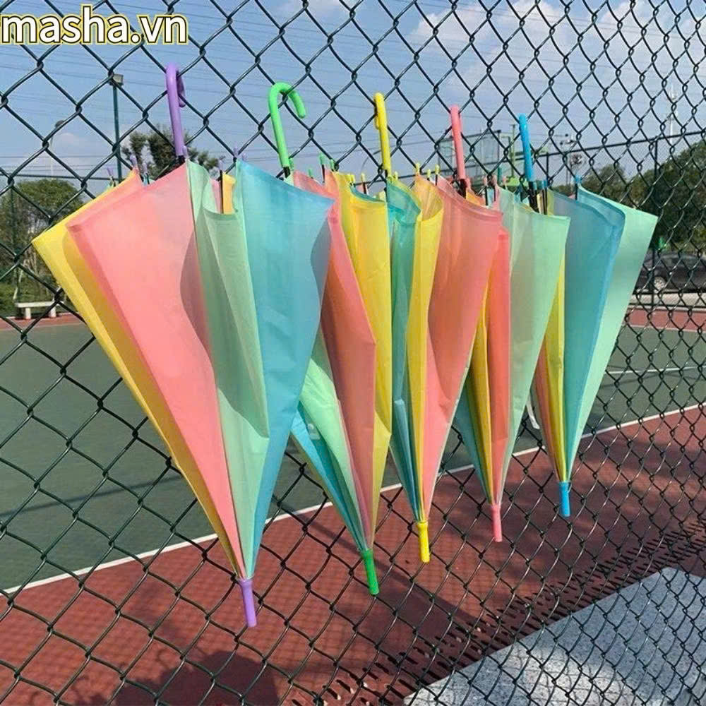 - Màu sắc: Ô có thiết kế trong suốt với nhiều màu sắc cầu vồng rực rỡ, tạo điểm nhấn nổi bật trong mọi bức ảnh. Cán ô có màu ngẫu nhiên thêm phần thú vị và dễ phối hợp với nhiều phong cách trang phục. Ưu Điểm Nổi Bật: