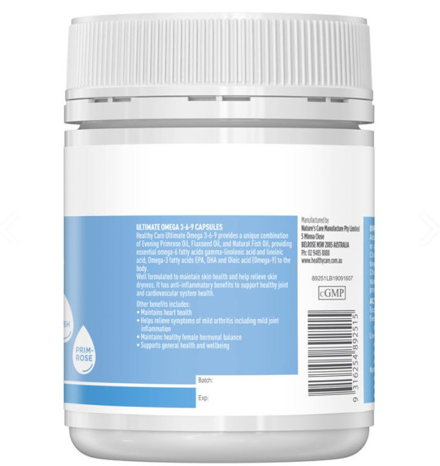 Omega 3-6-9 Healthy Care Ultimate của Úc 1000mg Hỗ Trợ Sức Khỏe Tim Mạch Tăng Cường Trí Nhớ