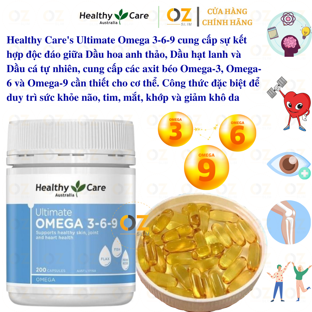 ✨Omega 3-6-9 Úc Healthy Care Ultimate 1000mg Tạo sức khỏe cho tim, não, khớp, mắt và cải thiện da khô - OZ Slim Store