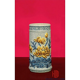 Ống hương sen men rạn đắp nổi Bát Tràng cao cấp