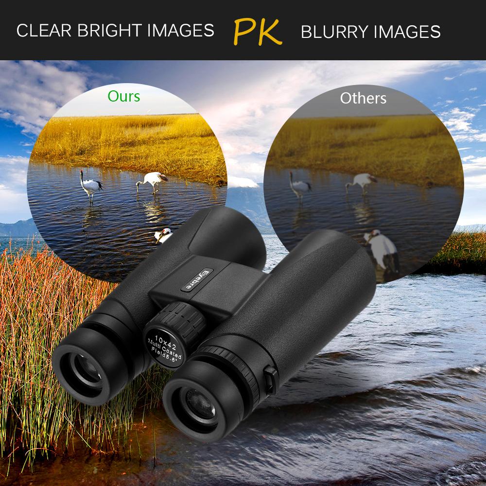 This compact and lightweight binocular is coated with green film and 10X magnification, which can provide you with brighter view, great for outdoor hunting, bird watching, hiking, sporting events and other activities.