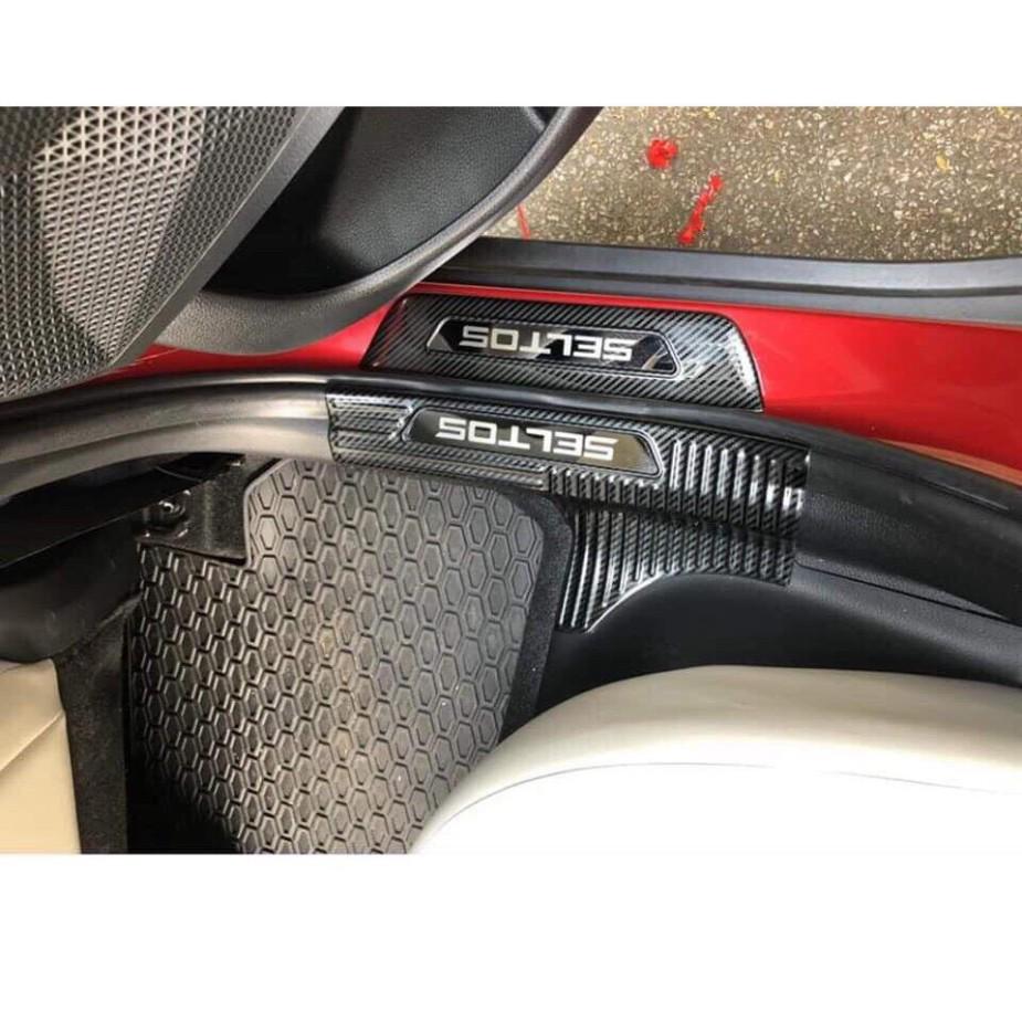 ✨Ốp bậc cửa trong ngoài, nẹp bước chân dành cho KIA SELTOS 2020 - 2021 mẫu carbon