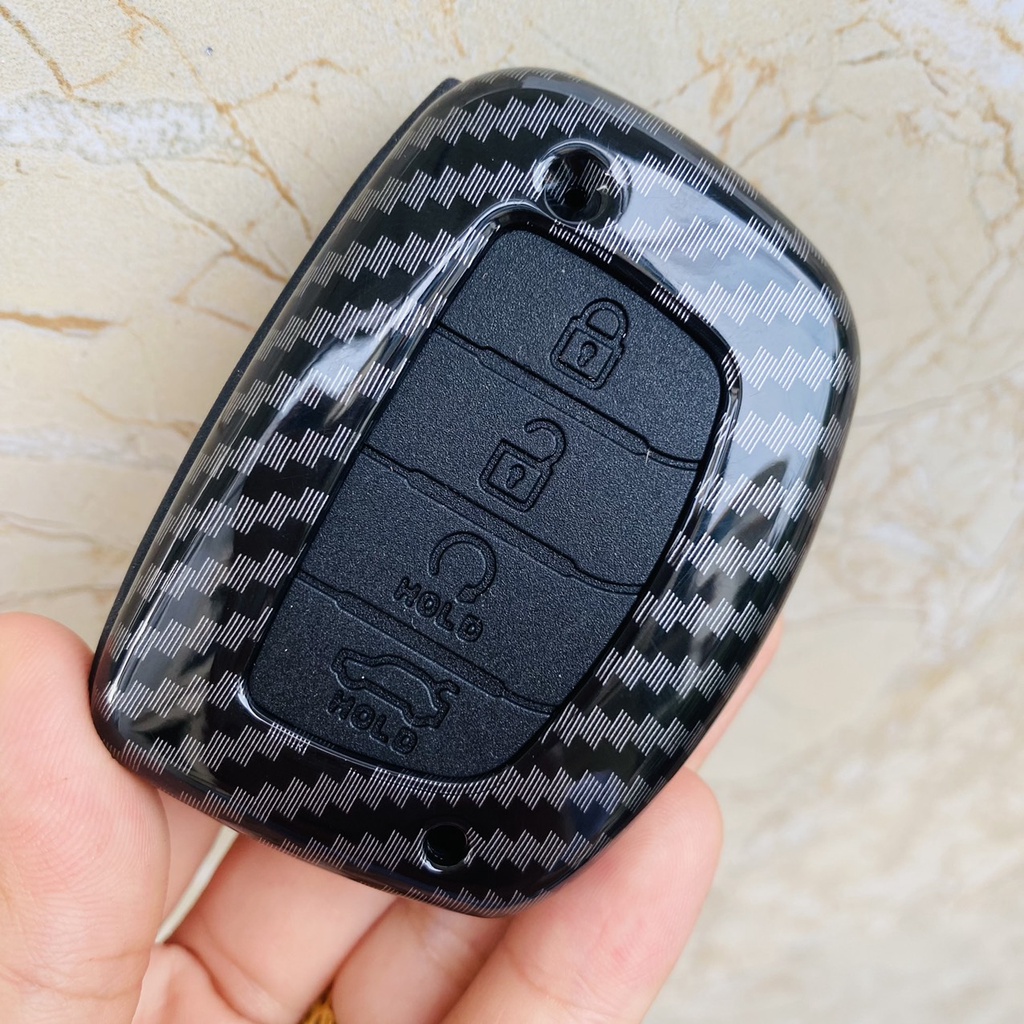 Mua tại TiktokỐp Chìa Khóa Carbon xe Hyundai Creta, i10 2021 2022 2023 - chìa 4 nút, kèm móc treo sang trọng, bảo vệ chìa khóa xe toàn diện
