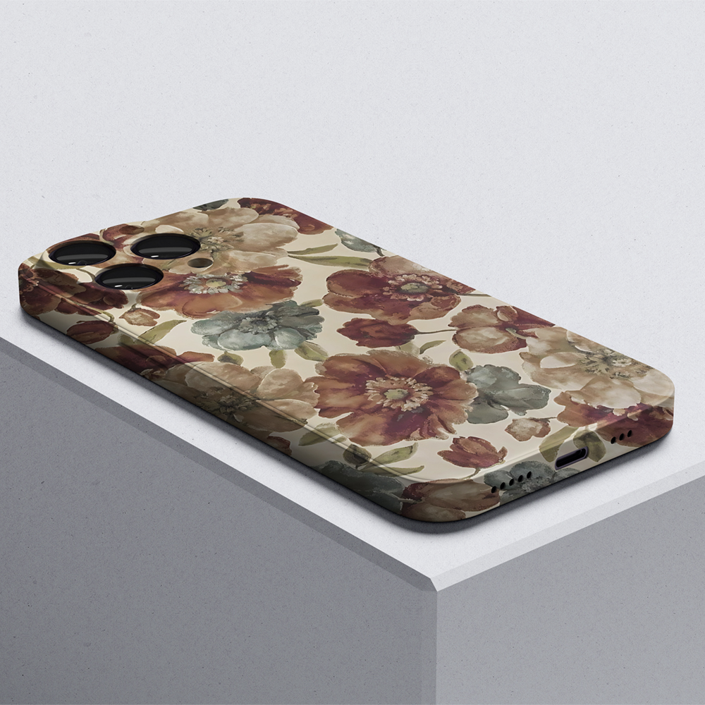Lấy cảm hứng từ vẻ đẹp mộc mạc ấy, Ốp Lưng iPhone Wildflower Vintage mang đến một bức tranh hoa dại với gam màu nâu đỏ, xanh xám và be cổ điển, gợi nhớ đến những ngày xưa cũ ấm áp. Mỗi bông hoa trên ốp như đang kể câu chuyện về sự tự do, mạnh mẽ và niềm tin vào những điều tốt đẹp.