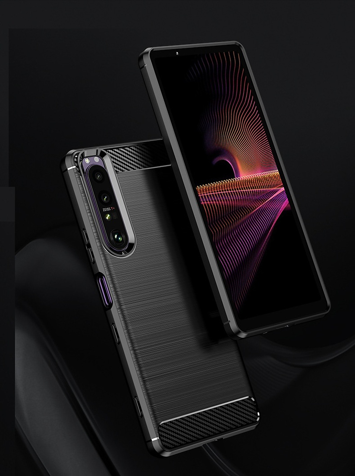 Ốp lưng chống sốc Sony Xperia 1 Vân Sợi Carbon được thiết kế với 2 dải carbon trên dưới tuyệt đẹp, độc đáo, sang trọng Ốp lưng được làm từ chất liệu nhựa mềm TPU