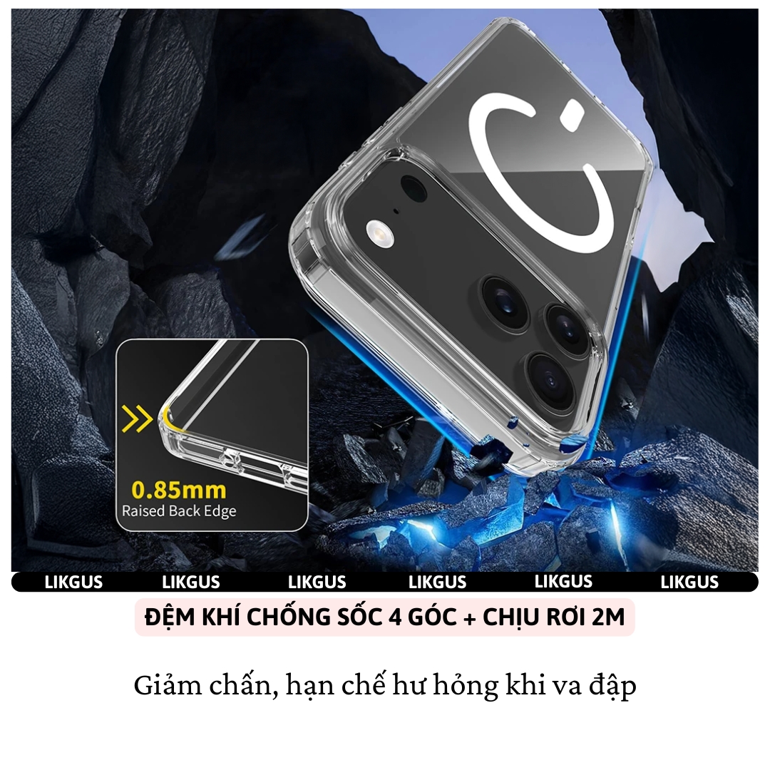 Vì sao nên chọn Likgus Magnetic N52? Nam châm N52 siêu mạnh – Kết nối Magnetic cực chắc Trong suốt chống ố vàng – Giữ trọn vẻ đẹp cho iPhone Chống sốc thông minh – An toàn toàn diện Gia công tinh xảo – Ôm khít từng chi tiết Phù hợp phong cách tối giản & hiện đại