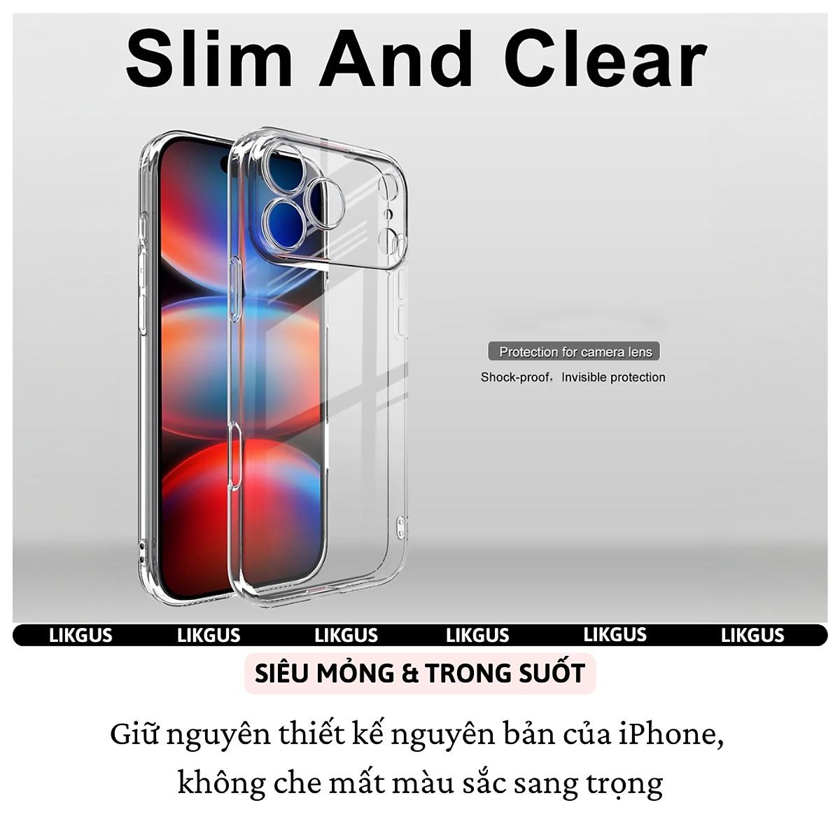 Ốp Lưng Trong Suốt Chống Sốc – Likgus Camshield Cho iPhone 17 Series Bảo vệ camera chuyên biệt – An toàn tuyệt đối Ốp lưng Likgus Camshield được trang bị nắp trượt bảo vệ camera