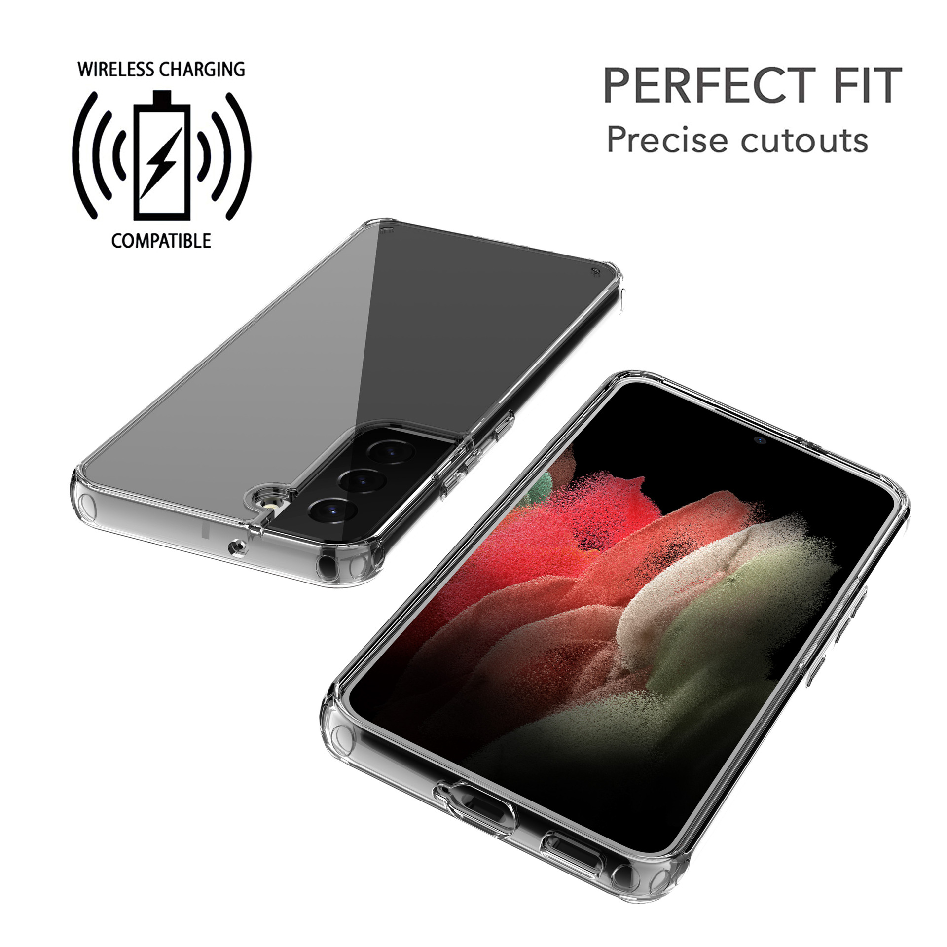 Ốp trong suốt từ nhựa TPU mềm, dẻo, mặt sau rõ ràng để lộ vẻ đẹp của Samsung Galaxy S22 Series