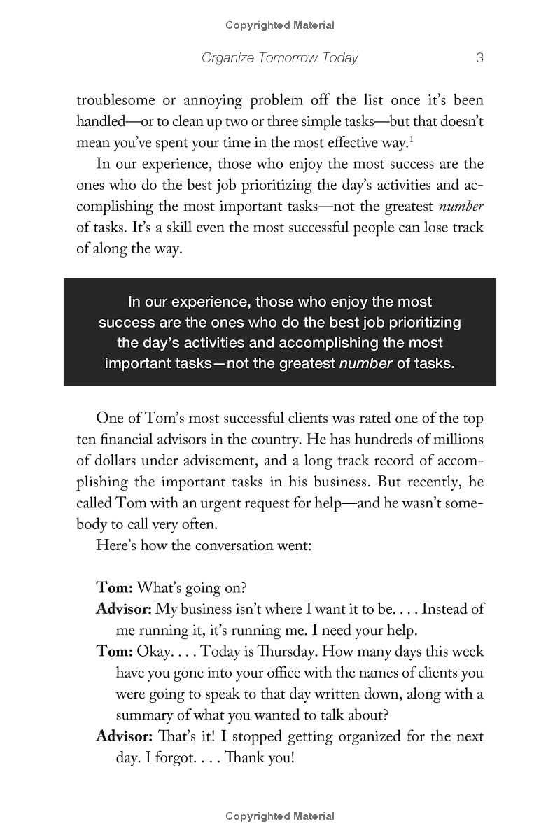 In Organize Tomorrow Today (OTT), two of the top minds in human performance come together to r the pathway to extreme success: Doing more is not the answer, and Selk and Bartow walk you through how to achieve more by doing less.