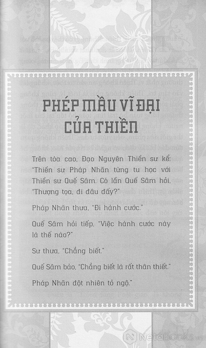 Hơn tất thảy các truyền thống tôn giáo và tâm linh khác, Thiền đóng vai trò vô cùng thiết thực với thời đại ngày nay, khi những cách tiếp cận xưa cũ không còn có thể giải quyết triệt để vấn đề. Tức thì, cấp bách và trực tiếp, Thiền không quan tâm đến câu hỏi hay câu trả lời, cũng chẳng màng đến giáo huấn hay dạy dỗ, bởi lẽ Thiền không phải là triết lý.