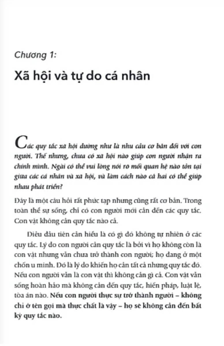 Ở phần đầu tiên của quyển sách, Osho nói về các chiều kích của tự do. Theo ông, tự do có ba chiều kích. Chiều kích thứ nhất là về thể chất. Con người có thể bị biến thành nô lệ, bị rao bán như một món hàng, họ không có quyền con người. Tự do về thể chất là không có bất kỳ sự phân biệt nào liên quan đến cơ thể con người, về màu da, giới tính, sự trong sạch hay uế tạp, mọi cơ thể đều bình đẳng.