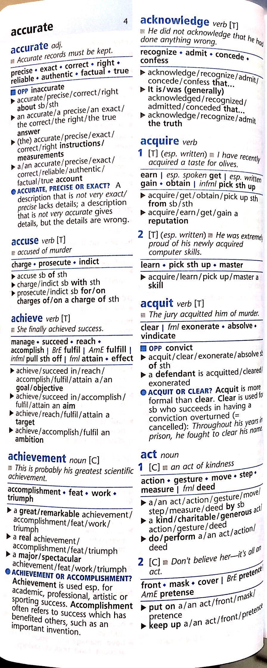 • Up to 12 synonyms given for each of the 5,000 key words and meanings. • British/American, formal/informal, approving/disapproving terms clearly marked. • Hundreds of notes identify the exact differences between pairs of synonyms. • Patterns and collocations help learners use the synonyms in context.