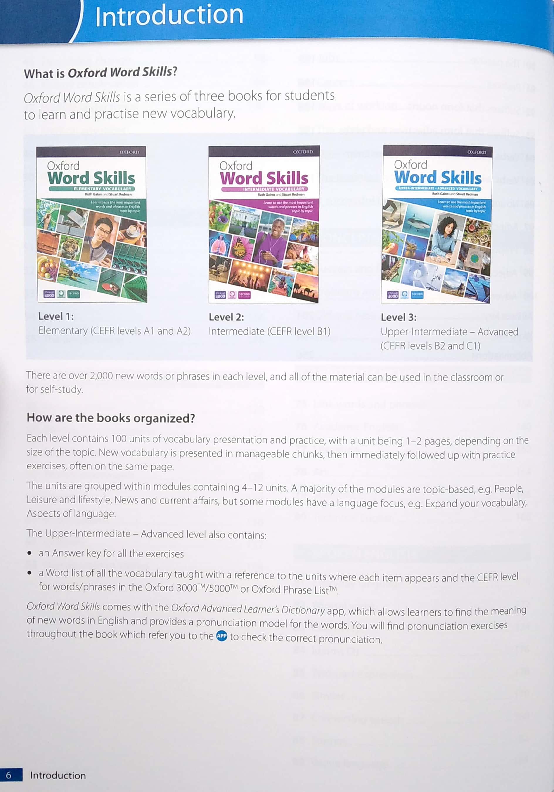 Oxford Word Skills improves students' vocabulary and vocabulary-learning skills. Short, clear presentations and lots of opportunity for practice give students the confidence to use new vocabulary. 100 units at each level mean they cover a huge range of topics and everyday situations. The Oxford Advanced Learner's Dictionary app, or OALD app, provides pronunciation and more information about the meaning and usage of words.